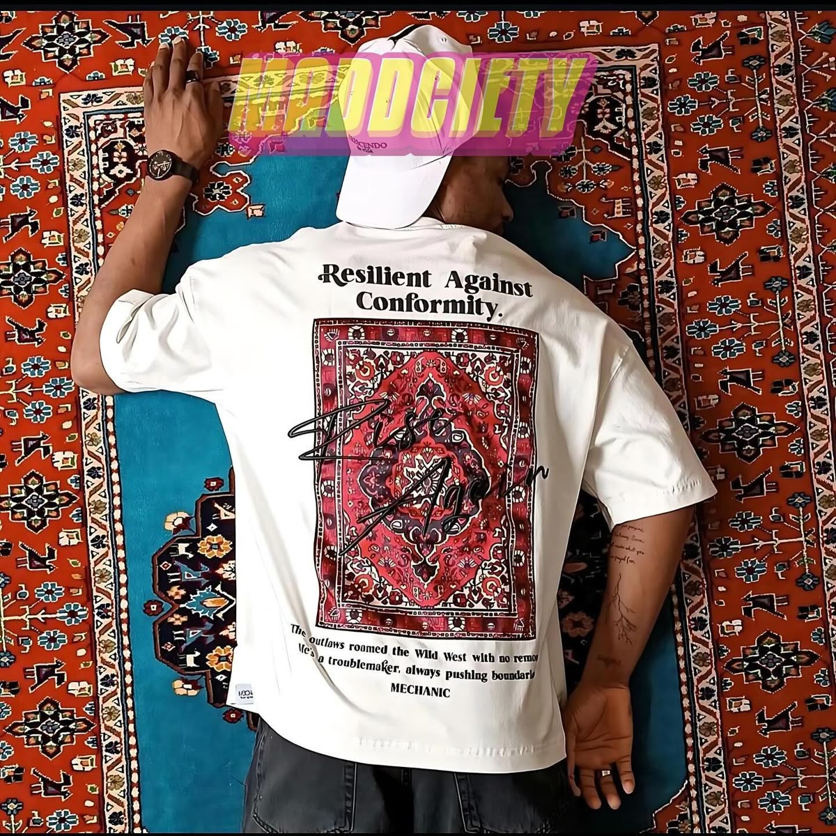 White tshirt with red fire bird